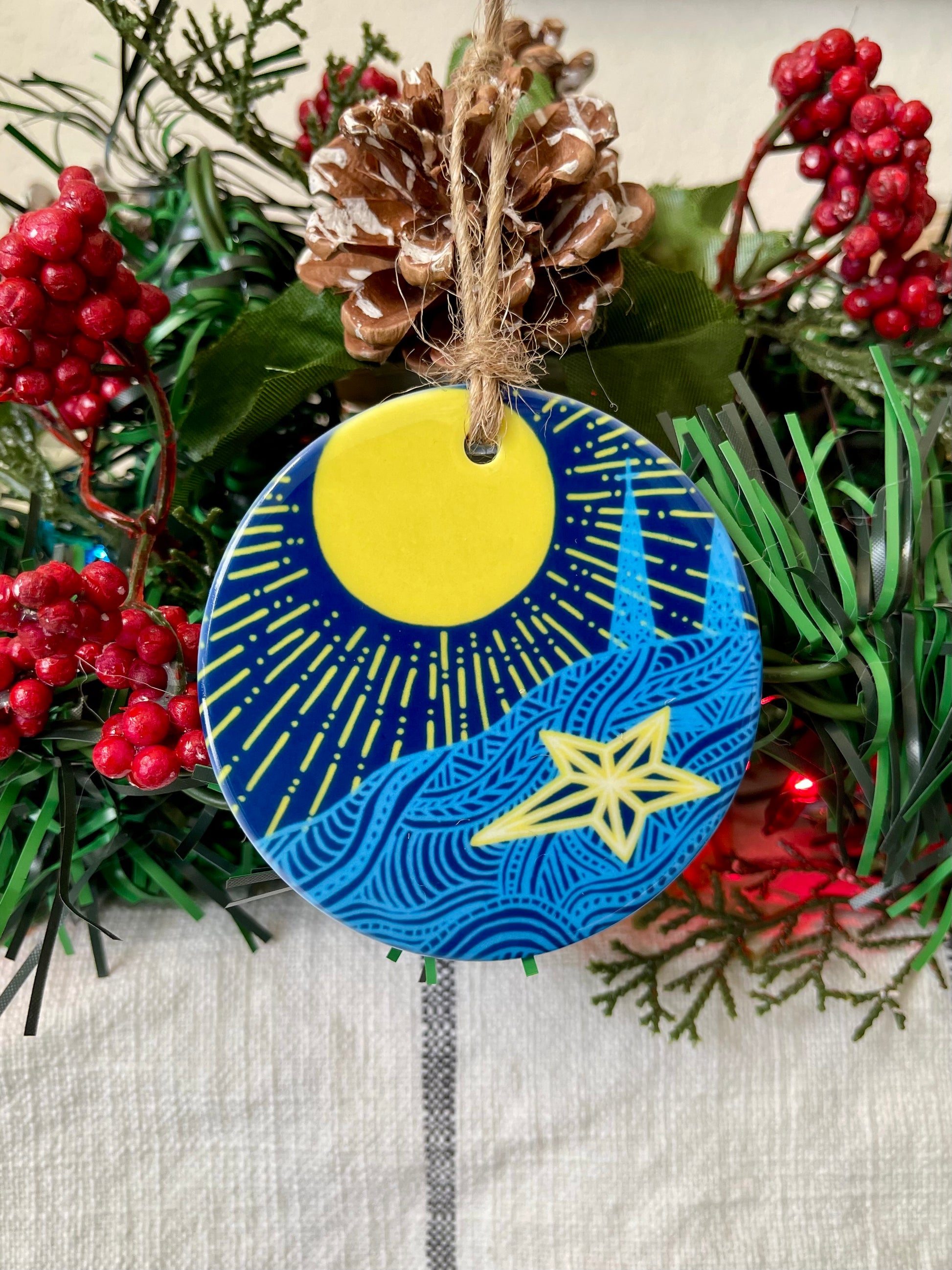 Add a touch of art to your holiday decor with these stunning double-sided porcelain ornaments. Each ornament features a vibrant image of one of my original paintings, printed on both sides for a beautiful display from any angle.