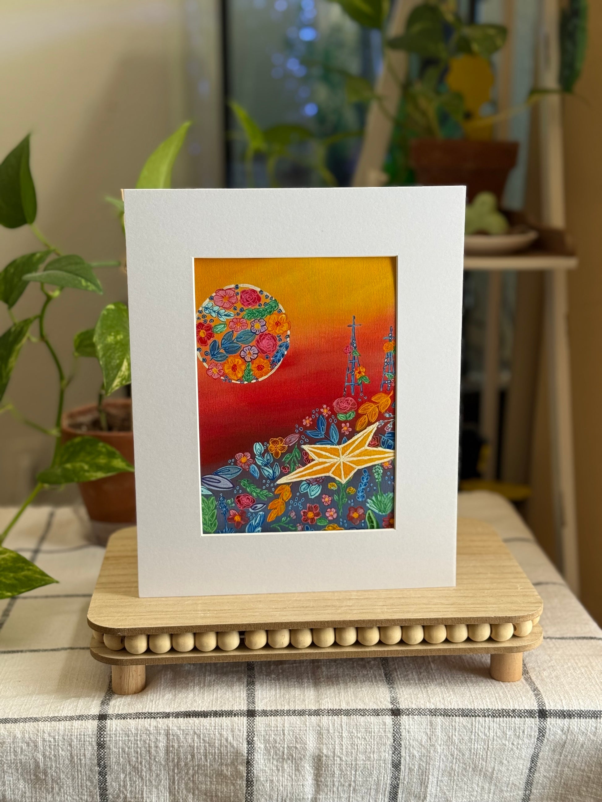 A 5x7 photo reproduction of the original painting "Radiant Rebel", this matted photo perfectly fits an 8x10 frame.