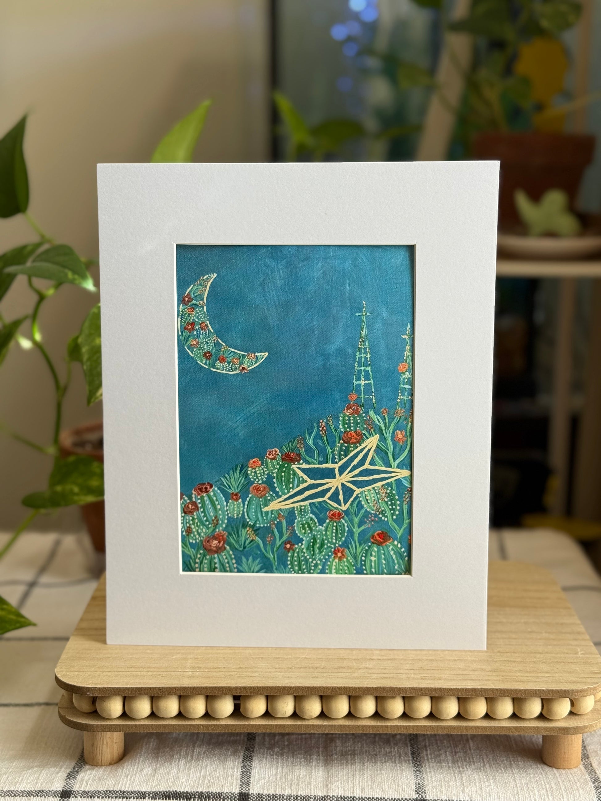 A 5x7 photo reproduction of the original painting "Southwest Beauty", this matted photo perfectly fits an 8x10 frame.